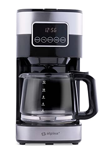 alpina Kaffeemaschine 900W – Filterkaffee – 1,5 L/12 Tassen – Zeitvorwahl – Warmhalteplatte – Digitalanzeige – Dunkelhäutig
