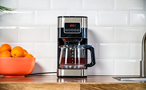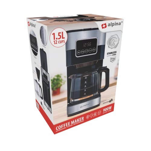 alpina Kaffeemaschine 900W – Filterkaffee – 1,5 L/12 Tassen – Zeitvorwahl – Warmhalteplatte – Digitalanzeige – Schwarz
