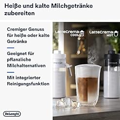 LEICHT ZU REINIGEN: automatische Reinigung mit Entkalkungs-, Reinigungs- und Spülprogrammen; die Ablage, der Behälter, die Milchkaraffe (außer dem Deckel) und der Milchschlauch sind spülmaschinengeeignet