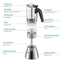 Jeglicher Teile sind spülmaschinengeeignet – Der Espressokocher sämtliche Edelstahl ist schnell zerlegbar und pflegeleicht von Hand oder in der Geschirrspüler zu reinigen