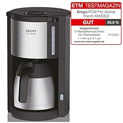Krups KM305D Filterkaffeemaschine ProAroma | Thermo- Edelstahlkanne | Automatische Abschaltung | 10-15 Tassen | 800 Watt | 1,25L Wassertank | Schwarz/ Edelstahl