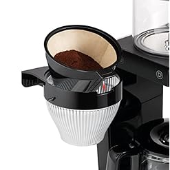 Glaskanne mit Tassenangabe / Voreinstellbare Tassenmenge (2-10 Tassen) / Schwenkbarer Filterhalter mit Tropfstopp / Filtergröße: 1×4 Filter